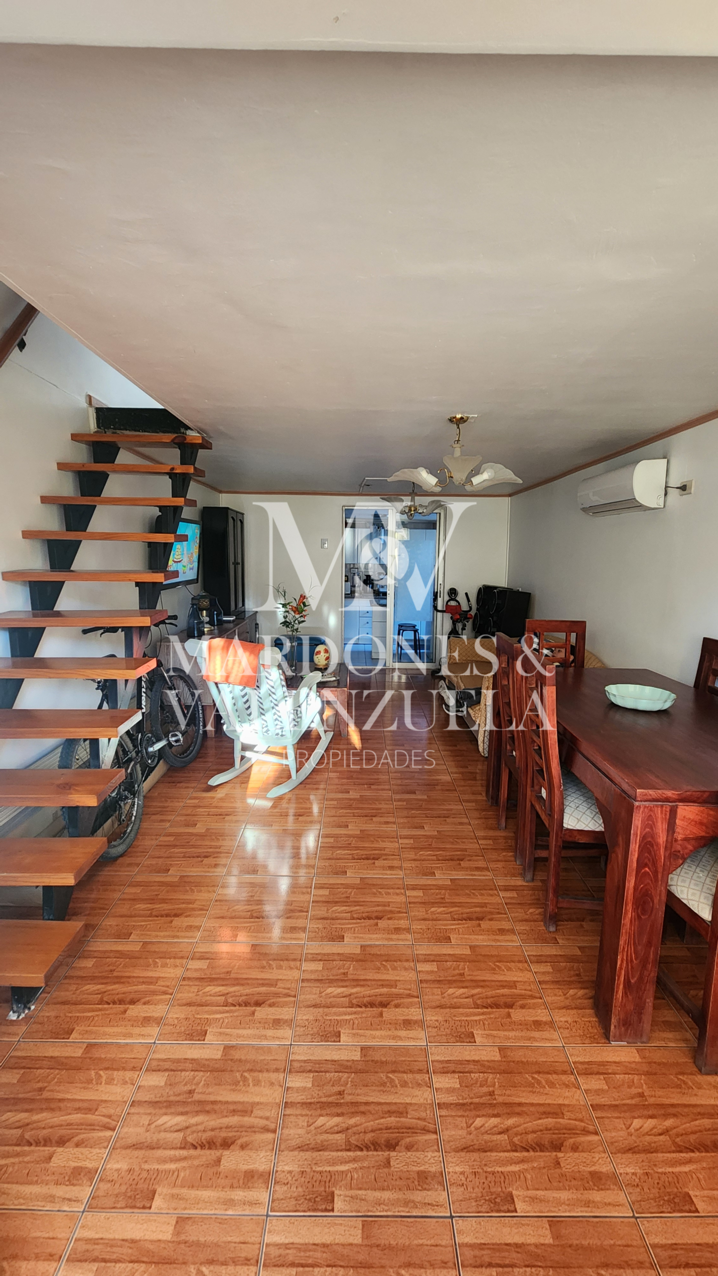 En el primer piso se encuentra un estacionamiento con acceso directo al patio lateral, cocina independiente con salida hacia una parrilla y área social exterior, espacio techado para conexión de lavadora y antejardín. El living–comedor cuenta con aire acondicionado, brindando comodidad durante todo el año.